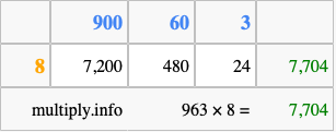 Finally, we add up all the sums we found in step 3 to get our final answer to 963 times 8.