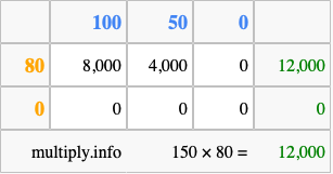 Finally, we add up all the sums we found in step 3 to get our final answer to 150 times 80.
