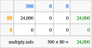 That's all there is to it! As you can see from the box above, the answer to 300 times 80 using the box method is 24,000.