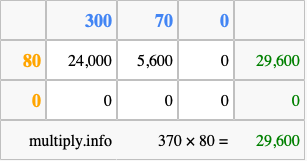 Finally, we add up all the sums we found in step 3 to get our final answer to 370 times 80.