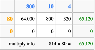 Finally, we add up all the sums we found in step 3 to get our final answer to 814 times 80.