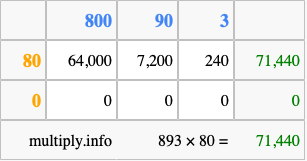 Finally, we add up all the sums we found in step 3 to get our final answer to 893 times 80.