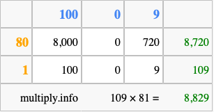 Finally, we add up all the sums we found in step 3 to get our final answer to 109 times 81.