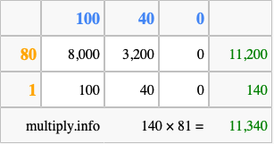 Finally, we add up all the sums we found in step 3 to get our final answer to 140 times 81.