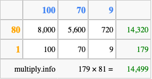 Finally, we add up all the sums we found in step 3 to get our final answer to 179 times 81.