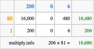 Finally, we add up all the sums we found in step 3 to get our final answer to 206 times 81.