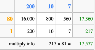 Finally, we add up all the sums we found in step 3 to get our final answer to 217 times 81.