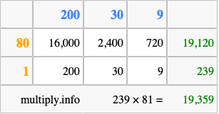 Finally, we add up all the sums we found in step 3 to get our final answer to 239 times 81.