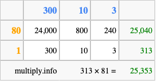 Finally, we add up all the sums we found in step 3 to get our final answer to 313 times 81.