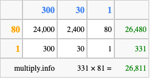 Finally, we add up all the sums we found in step 3 to get our final answer to 331 times 81.