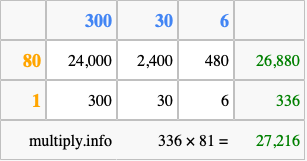 Finally, we add up all the sums we found in step 3 to get our final answer to 336 times 81.