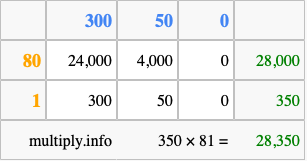Finally, we add up all the sums we found in step 3 to get our final answer to 350 times 81.