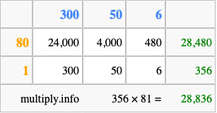Finally, we add up all the sums we found in step 3 to get our final answer to 356 times 81.
