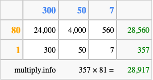 Finally, we add up all the sums we found in step 3 to get our final answer to 357 times 81.