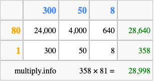 Finally, we add up all the sums we found in step 3 to get our final answer to 358 times 81.