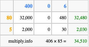 Finally, we add up all the sums we found in step 3 to get our final answer to 406 times 85.