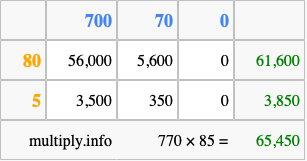 Finally, we add up all the sums we found in step 3 to get our final answer to 770 times 85.