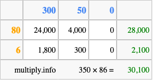 Finally, we add up all the sums we found in step 3 to get our final answer to 350 times 86.