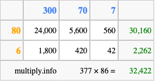 Finally, we add up all the sums we found in step 3 to get our final answer to 377 times 86.