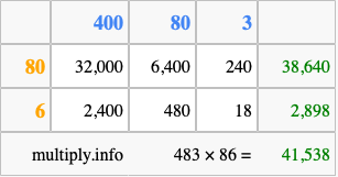 Finally, we add up all the sums we found in step 3 to get our final answer to 483 times 86.