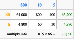 Finally, we add up all the sums we found in step 3 to get our final answer to 815 times 86.