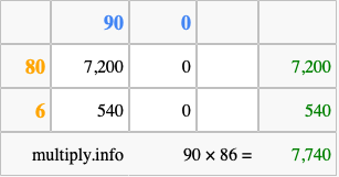 Finally, we add up all the sums we found in step 3 to get our final answer to 90 times 86.