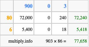 Finally, we add up all the sums we found in step 3 to get our final answer to 903 times 86.