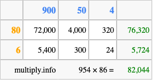 Finally, we add up all the sums we found in step 3 to get our final answer to 954 times 86.