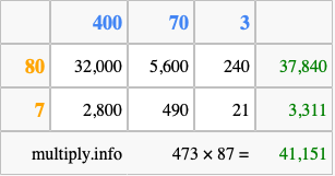 Finally, we add up all the sums we found in step 3 to get our final answer to 473 times 87.