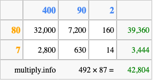 Finally, we add up all the sums we found in step 3 to get our final answer to 492 times 87.