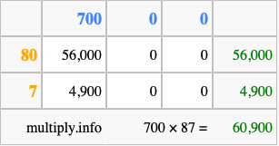 Finally, we add up all the sums we found in step 3 to get our final answer to 700 times 87.