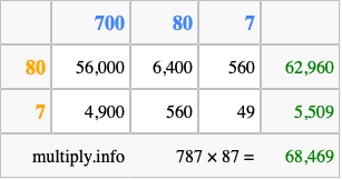 Below is an illustration showing you how to calculate 787 times 87 using the box method, using the instructions above.