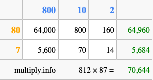 Finally, we add up all the sums we found in step 3 to get our final answer to 812 times 87.