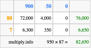 Finally, we add up all the sums we found in step 3 to get our final answer to 950 times 87.