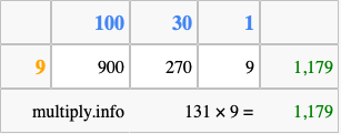 That's all there is to it! As you can see from the box above, the answer to 131 times 9 using the box method is 1,179.