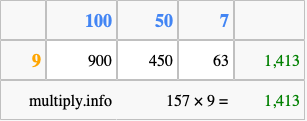 That's all there is to it! As you can see from the box above, the answer to 157 times 9 using the box method is 1,413.