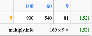 That's all there is to it! As you can see from the box above, the answer to 169 times 9 using the box method is 1,521.