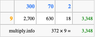 That's all there is to it! As you can see from the box above, the answer to 372 times 9 using the box method is 3,348.