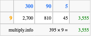 Finally, we add up all the sums we found in step 3 to get our final answer to 395 times 9.