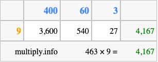 Finally, we add up all the sums we found in step 3 to get our final answer to 463 times 9.