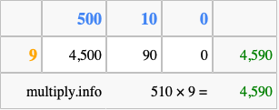 That's all there is to it! As you can see from the box above, the answer to 510 times 9 using the box method is 4,590.