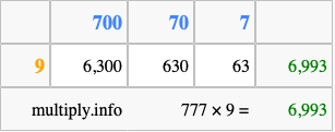 That's all there is to it! As you can see from the box above, the answer to 777 times 9 using the box method is 6,993.
