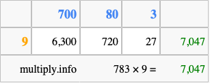 Finally, we add up all the sums we found in step 3 to get our final answer to 783 times 9.