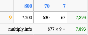 Below is an illustration showing you how to calculate 877 times 9 using the box method, using the instructions above.