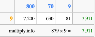 Finally, we add up all the sums we found in step 3 to get our final answer to 879 times 9.