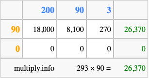 Below is an illustration showing you how to calculate 293 times 90 using the box method, using the instructions above.