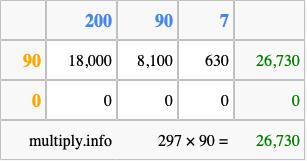 That's all there is to it! As you can see from the box above, the answer to 297 times 90 using the box method is 26,730.