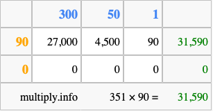 Finally, we add up all the sums we found in step 3 to get our final answer to 351 times 90.