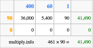 Below is an illustration showing you how to calculate 461 times 90 using the box method, using the instructions above.