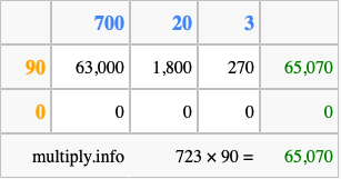 That's all there is to it! As you can see from the box above, the answer to 723 times 90 using the box method is 65,070.